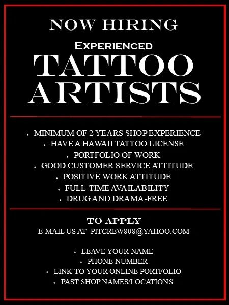 New tattoo artist careers are added daily on. Ink Spot Tattoo is always looking to add to Our Family. Find your next job and apply online today.
